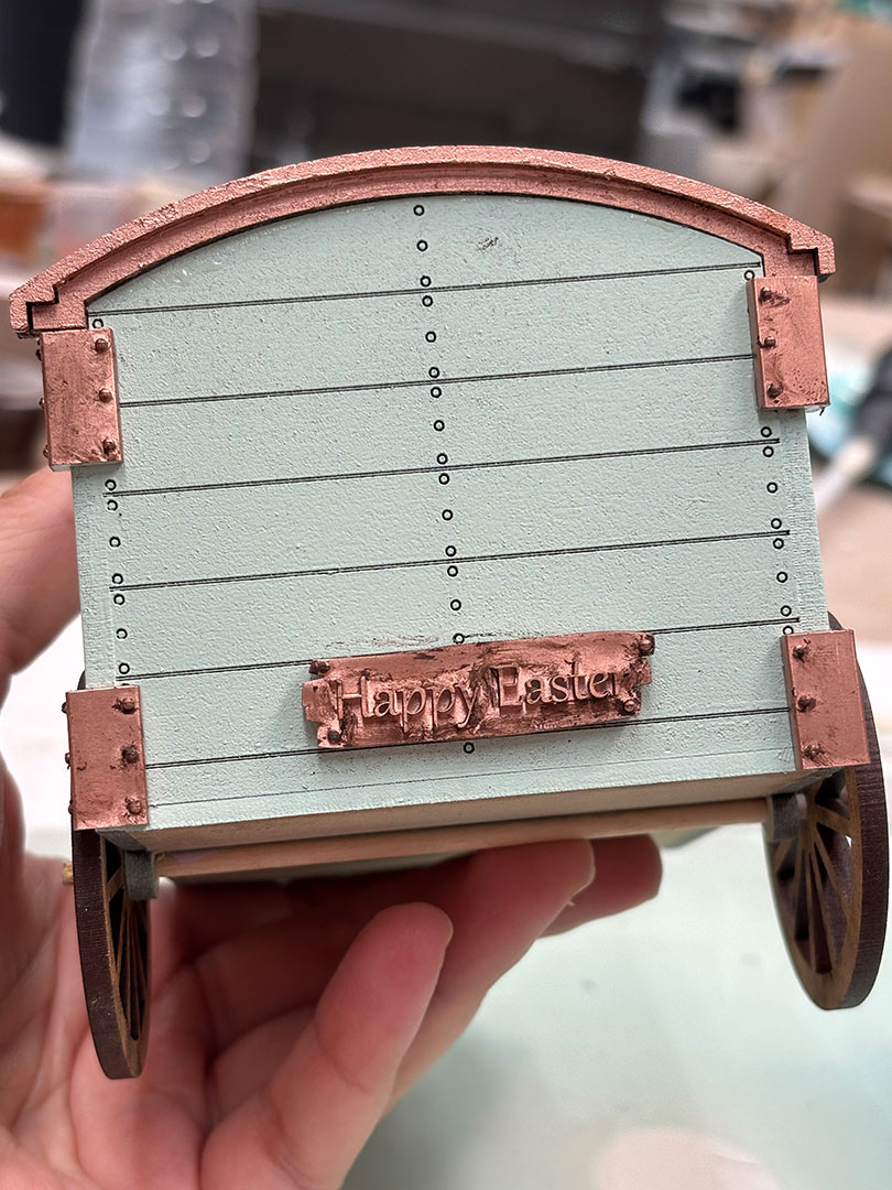 A wonderful Happy Easter wagon is an antique horse-drawn wagon that will let your imagination run wild. Inspired by Easter, you can fill it with boxes of Easter eggs, baskets of flowers, and farm produce. Or for a picnic.