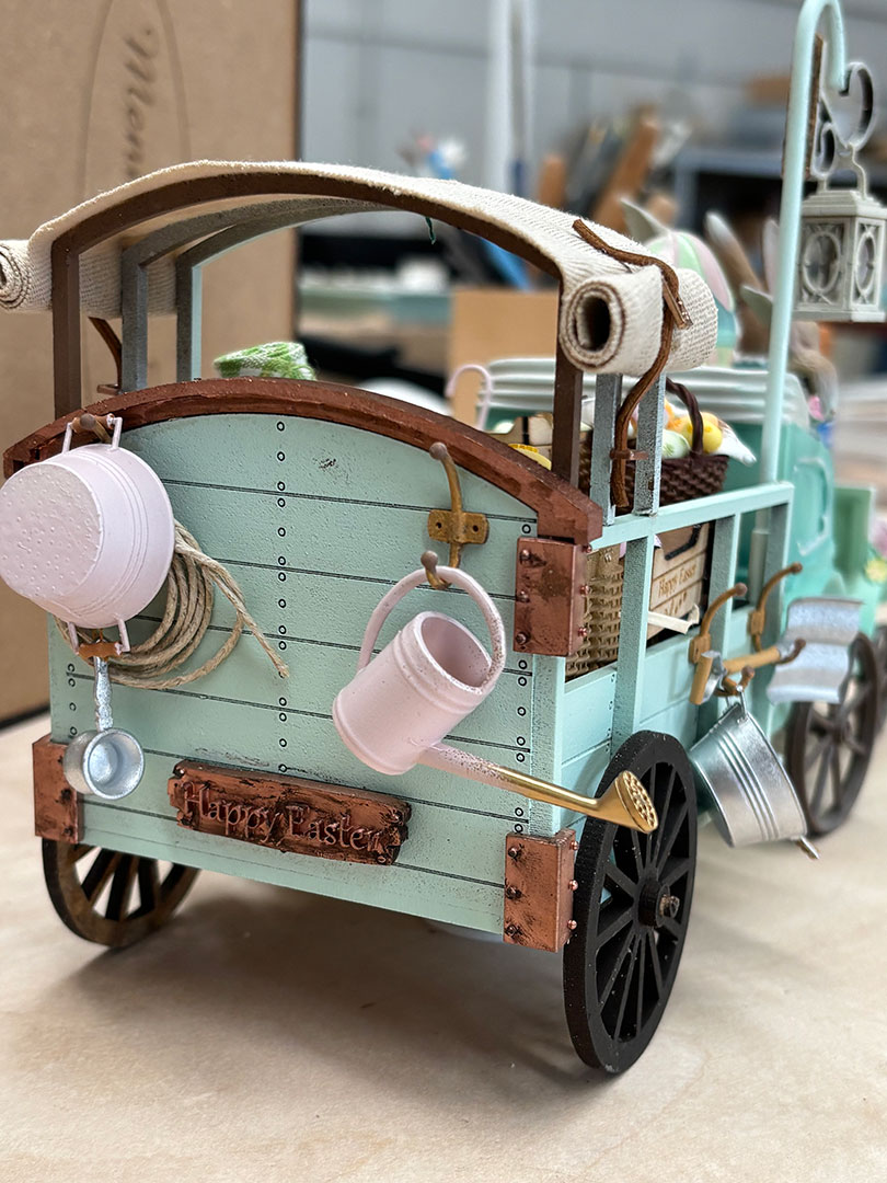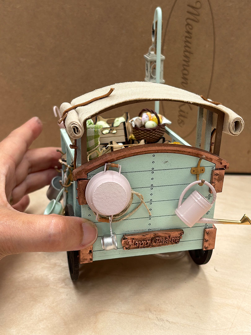THE HAPPY EASTER CARRIAGE MINIATURE KIT IS SOLD WITHOUT ACCESSORIES. TEXTILE IS NOT INCLUDED.