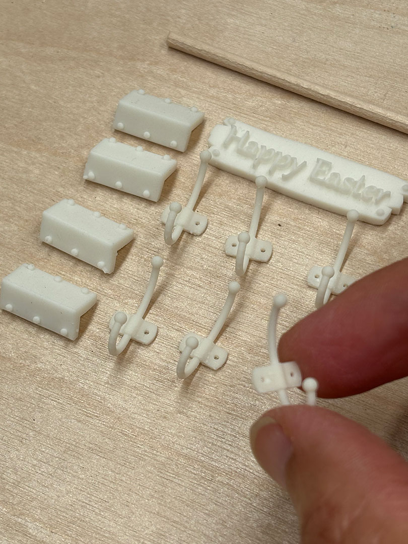 It comes with 3D hangers that you can stick wherever you want. And hang whatever accessories you like the most. It also comes with other 3D elements like corner protectors and a “Happy Easter” sign.