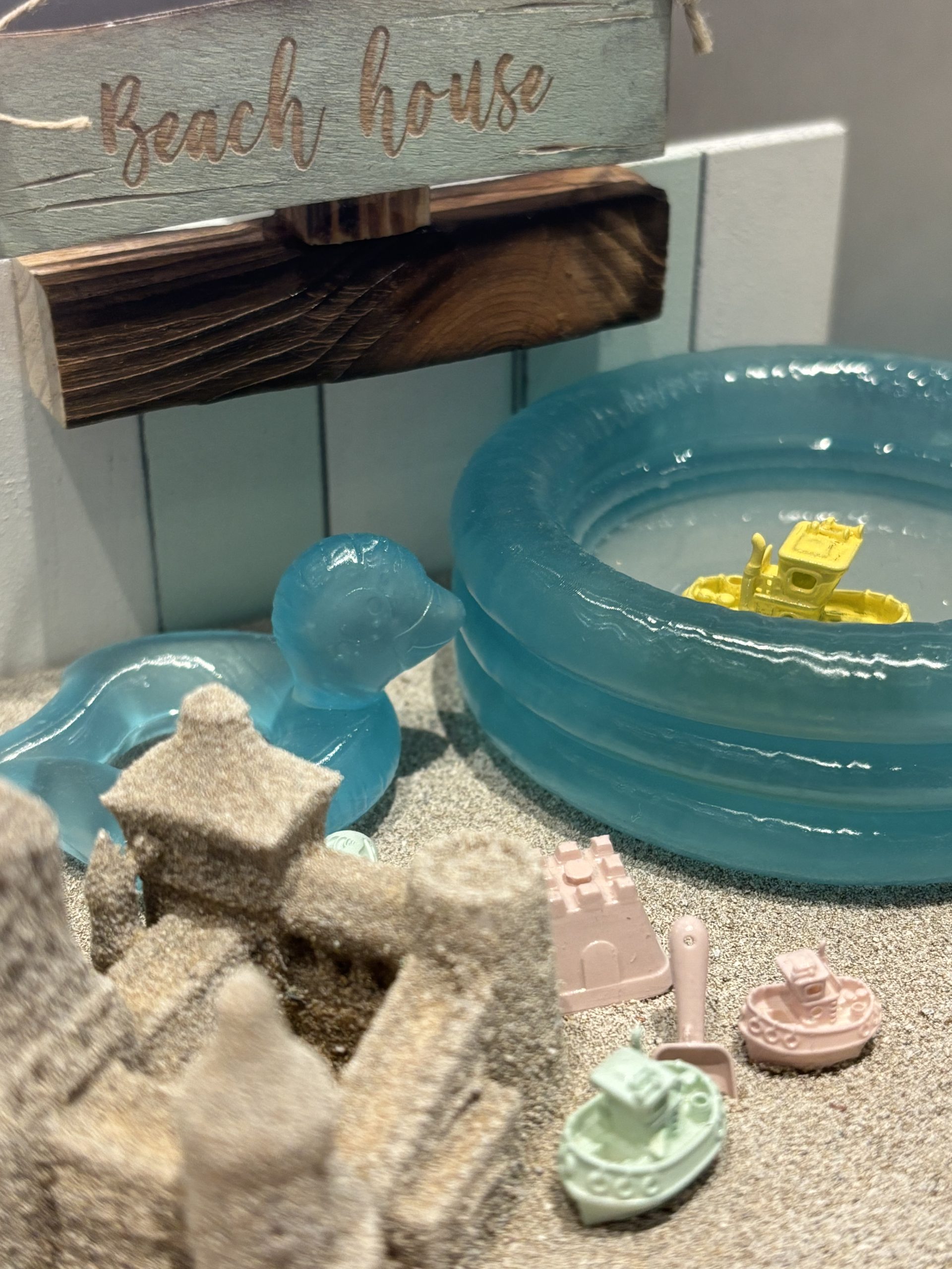 Create a fun and detailed summer scene with this miniature inflatable pool with water and toy boat, perfect for dollhouses or scale decorations. Made of resin, this piece is carefully designed to simulate a real inflatable pool, with a small floating boat that adds dynamism and realism to any scene.